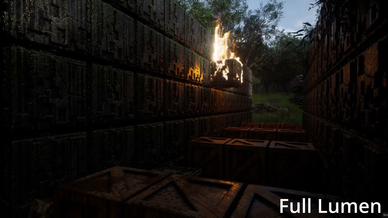 Как указал в соцсети X технический специалист Дилан Браун, режим Lumen Irradiance Cache — облегчённая версия технологии для бюджетных устройств — теперь интегрирована в движок. В сравнении со стандартным аппаратным Lumen, этот вариант демонстрирует меньшее качество затенения и отражений, однако видеодемонстрации подтверждают, что даже такая реализация предпочтительнее полного отсутствия динамического освещения.
