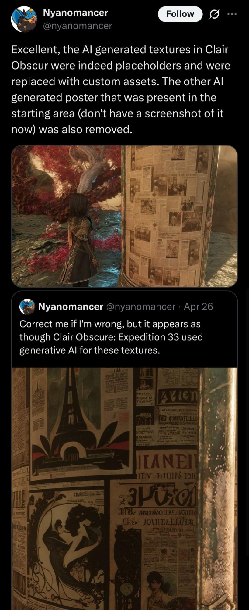 Игровая отрасль пока не выработала консенсус относительно генеративного ИИ. На фоне обсуждений вокруг Larian и Divinity очевидно, что и Clair Obscur: Expedition 33 применяла подобные решения, что не помешало её триумфу.