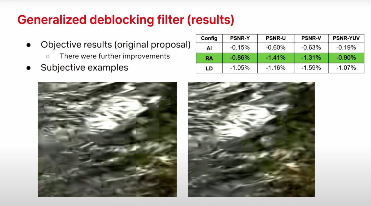Согласно тестам, версия AVM-11.0 обеспечивает заметно лучшую компрессию, чем AV1. Снижение битрейта достигает 28,68% при оценке через YUV-PSNR и 32,59% по шкале VMAF. Все задействованные алгоритмы проверены на соответствие требованиям к сложности декодирования.